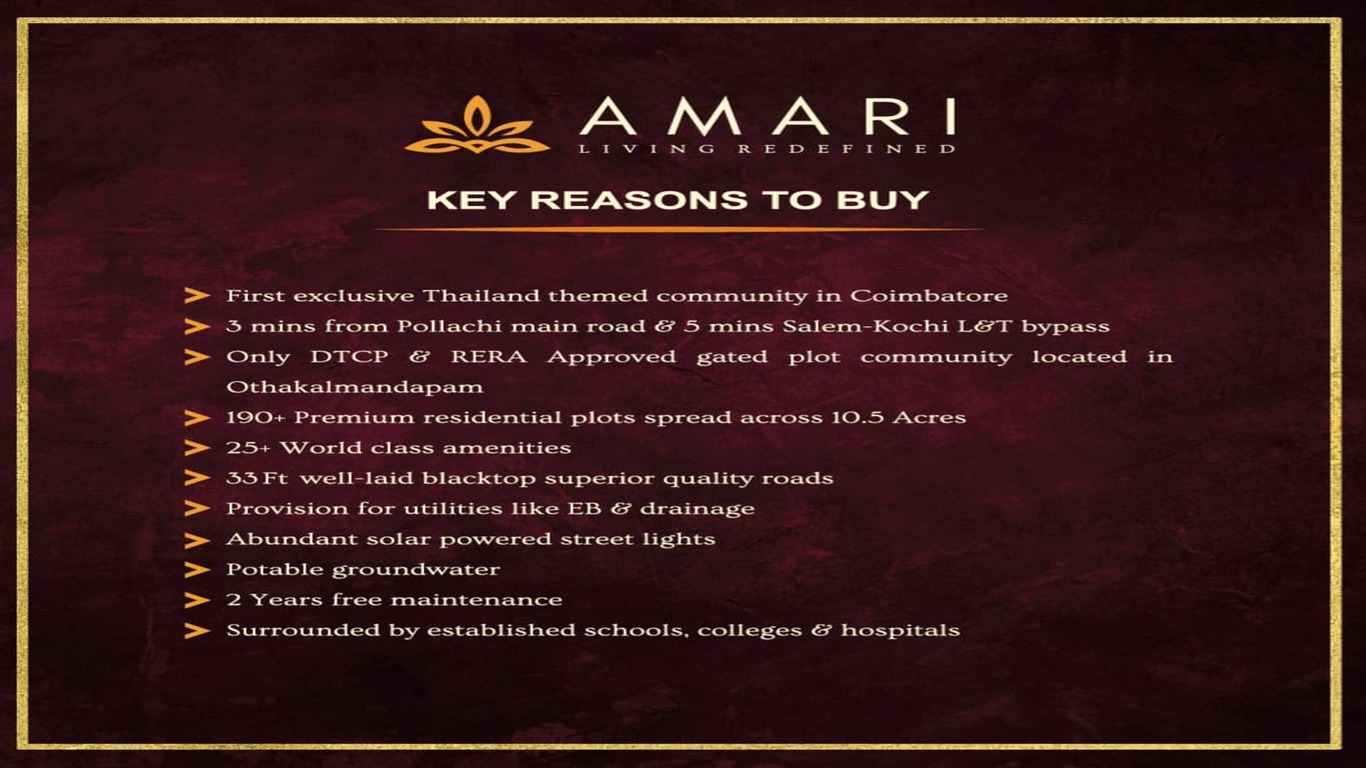 Introducing Amari DTCP & RERA Approved Plots: Coimbatore's First & "The Best" Thailand-Themed Masterpiece.